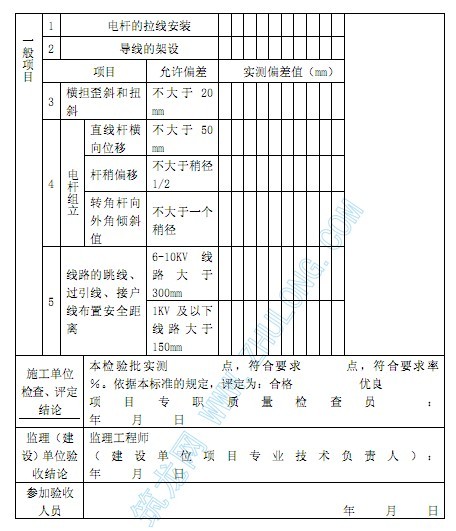 注:本表由施工項目專職質量檢查員填寫,監理工程師(建設單位項目專業技術